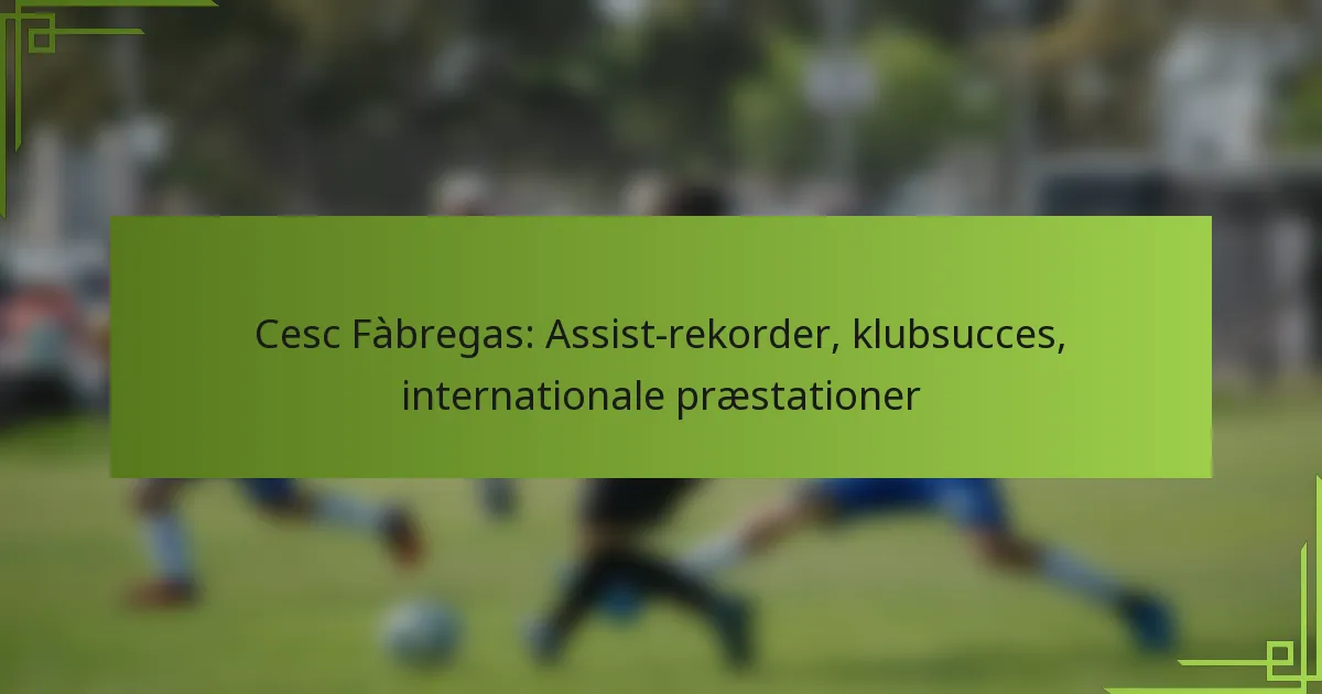 Cesc Fàbregas har haft en bemærkelsesværdig karriere præget af betydelige præstationer på både klub- og internationalt niveau. Hans rejse inkluderer adskillige assist-rekorder, klubsuccesser med top-hold og bemærkelsesværdige internationale præstationer med Spanien.